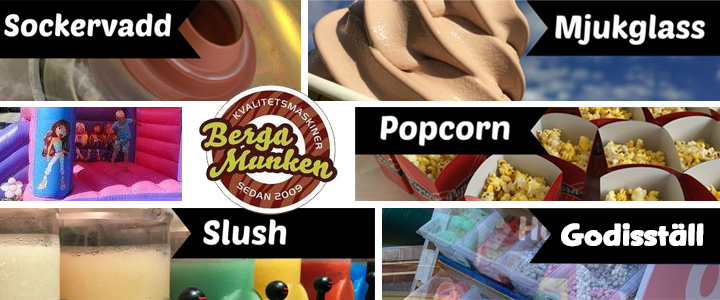 Bergamunken hyr ut sockervaddsmaskin, popcornmaskin, mjukglassmaskin, godisställ mm i Stockholm och hela Sverige...